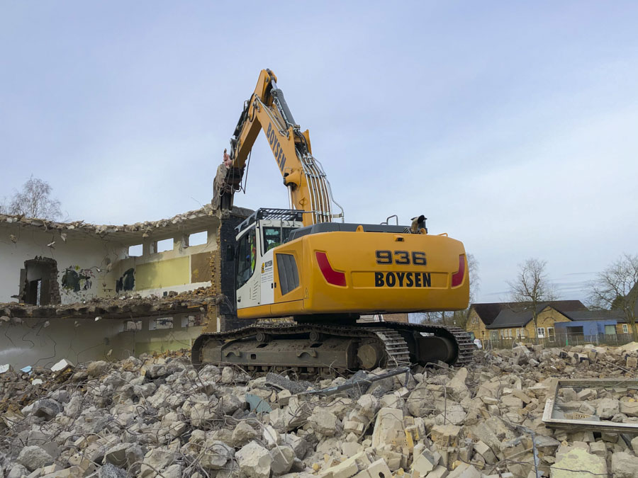 Komplettabbruch, Verwertung und Entsorgung eines Berufsschulgebäudes mit ca. 9.800 m³ ubR.